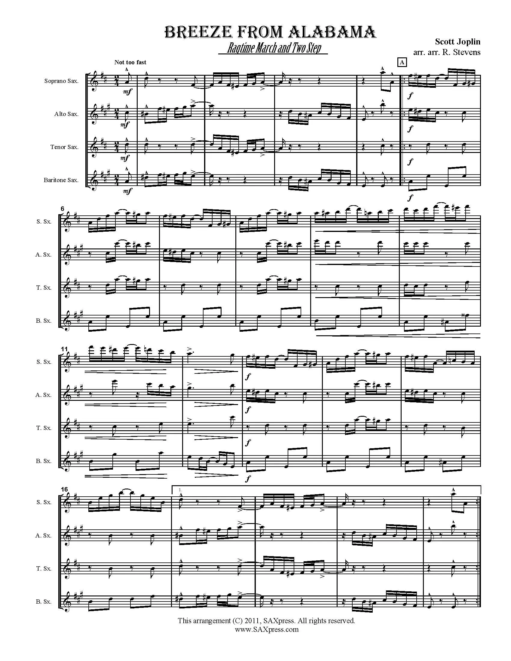 A Breeze from Alabama by Scott Joplin for SATB saxophone quartet
