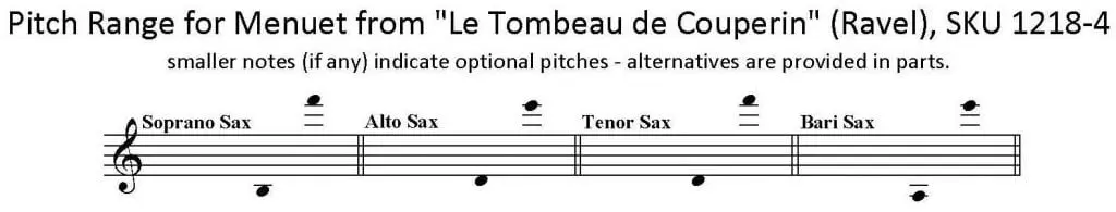 Menuet from Le Tombeau de Couperin by Ravel arranged for SATB saxophone quartet. This menuet is a movement from a suite for piano by Maurice Ravel. It was written between 1914 and 1917. Each of the six movements is dedicated to the memory of friend who had died fighting in World War I. Ravel himself was an army driver during the war. Later Ravel published the suite as an orchestral work that remains popular today.