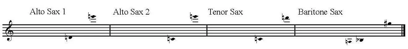Saxophone ranges for Petite Marche by Cesar Cui arranged for AATB saxophone quartet.
