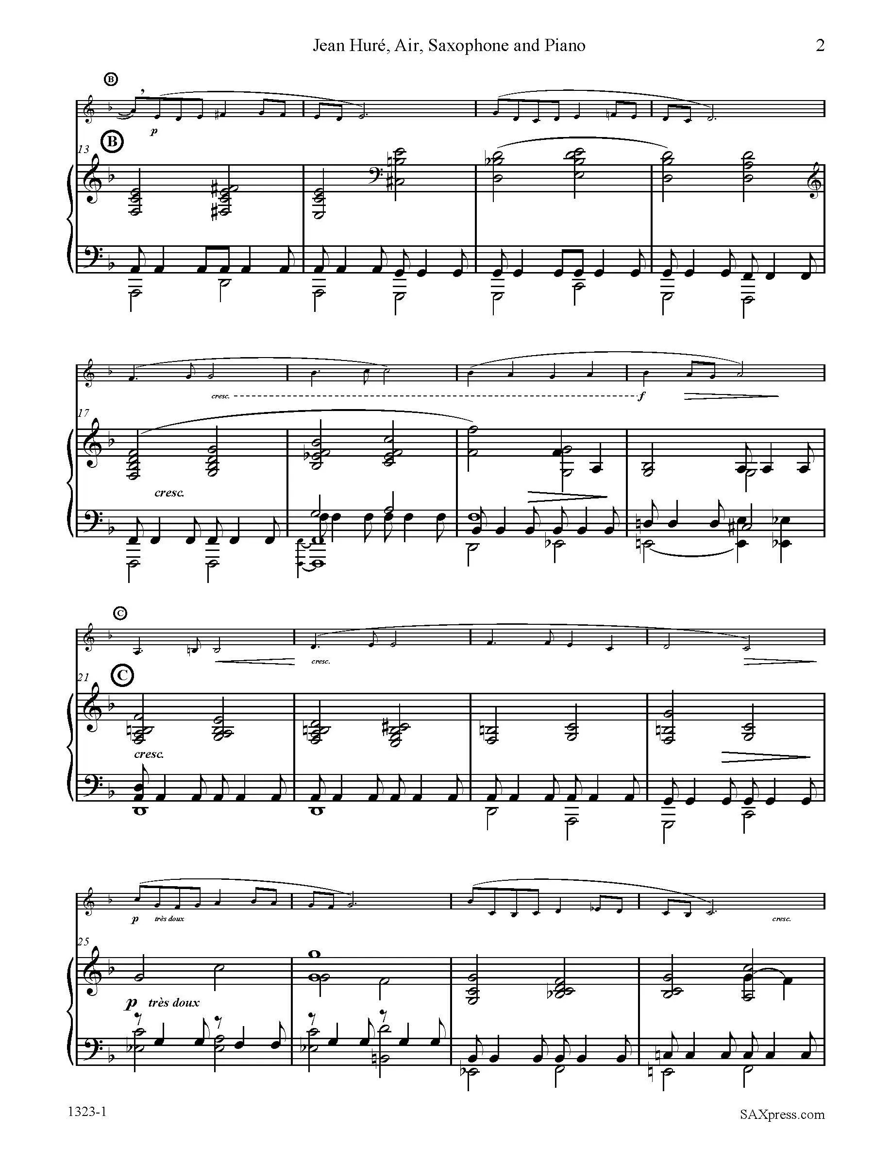 Air by Jean Huré, arranged for any saxophone solo with piano. Jean Huré was a French composer and organist of the early 20th century. His music is mostly unknown today. He was one of the composers commissioned by Elise Hall to create works for saxophone. He wrote several but as with his other works, they have fallen into obscurity. This short piece simply titled ‘Air’ was originally composed for cello and dedicated to Pablo Casals.
