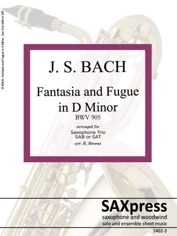 Originally for keyboard, this arrangement of Fantasie and Fugue in D Minor, BWV 905 is for Sax Trio SAB or SAT.