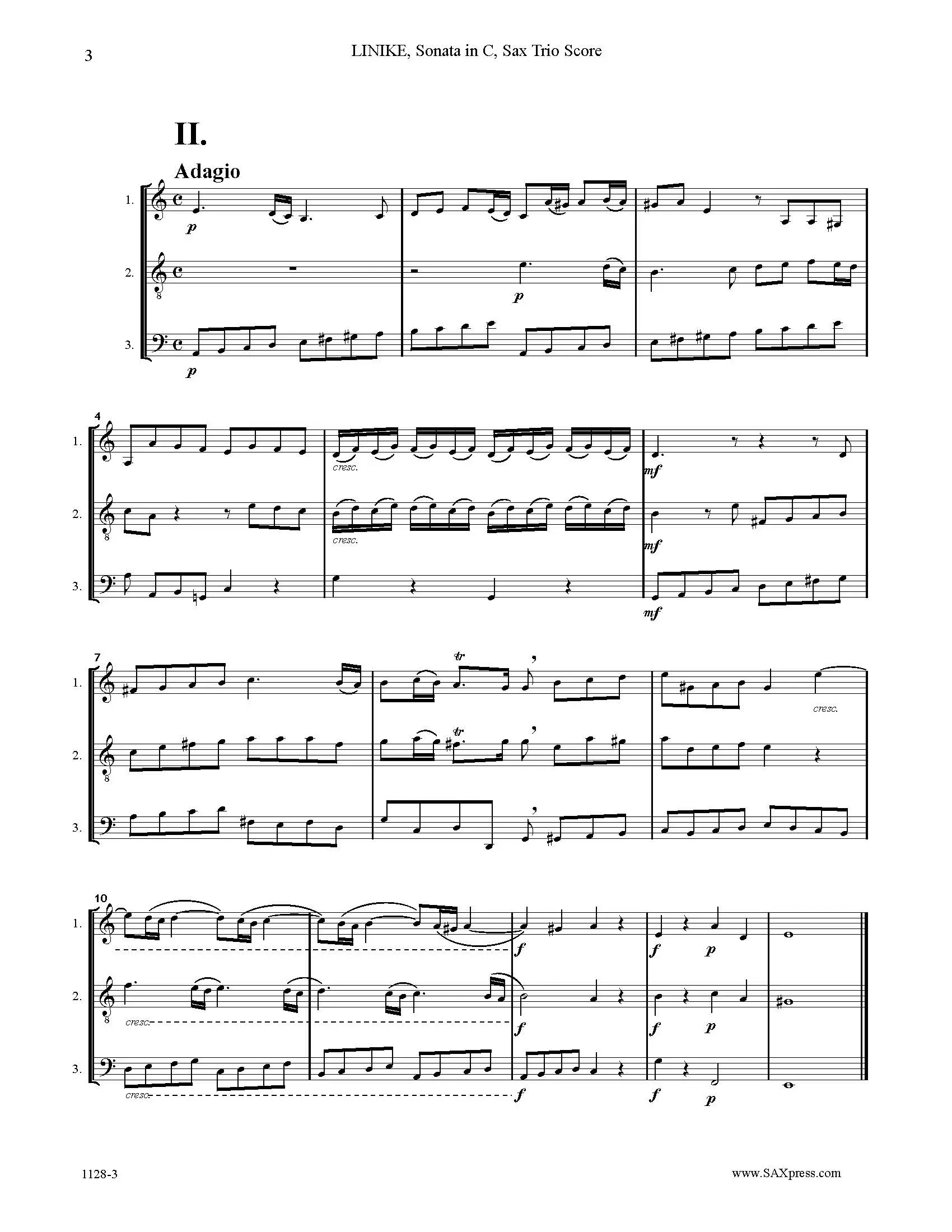 Trio Sonata in C by Linike for Saxophone trio SAT or SAB
